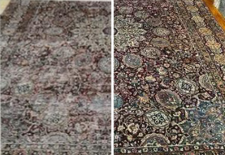 “We are particularly thrilled with the fine repair work performed on the large, damaged area near the center of the carpet and the tear on one side. We cannot find either damaged area, as you skilled repair work are so very well done. The fringe and bindings are excellent, greatly enhancing the beauty of the carpet.”